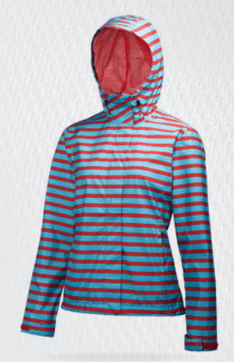 This is a lighter weight jacket but still with great practical features. It is water and windproof and boasts a breathable construction aided by pit zip vents and with the addition of a front storm flap. This jacket packs into its own pocket and its the kind you might take along on a summer outing just in case it rains.