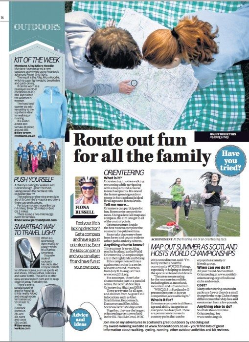 My Sunday Mail column focuses on the fun of orienteering and highlights the World Orienteering Championships 2015 being hosted in Scotland this summer. You can get involved at an amateur level in the Scottish 6 Days Orienteering Champs. Read the full article.