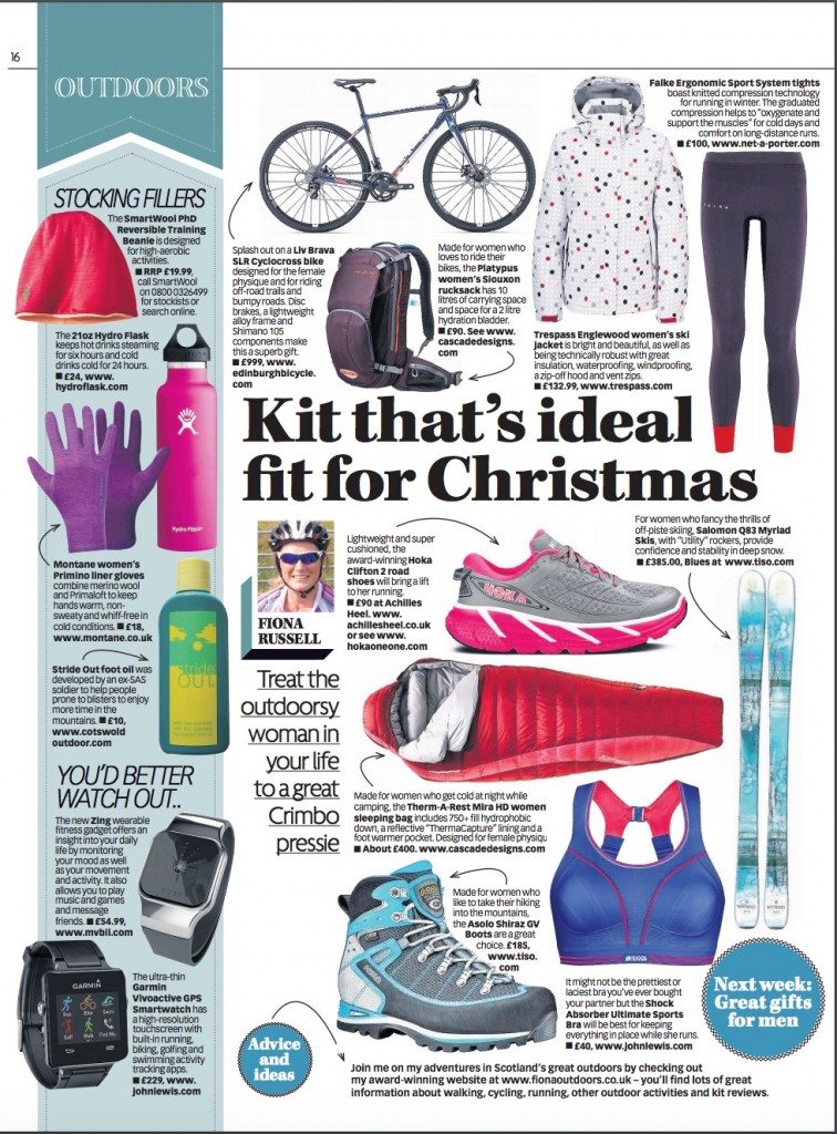 Here’s a round up of some great Christmas gifts that might well suit the outdoorsy lady in your life. It was published in my Sunday Mail It’s Great Outdoors column.