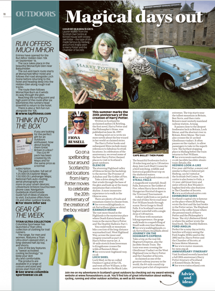 In celebration of the anniversary, I wrote about some of the best Harry Potter themed places to visit in Scotland’s great outdoors. See the Sunday Mail pdf or read below.