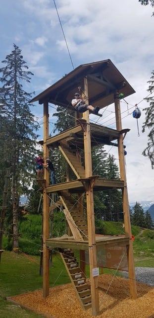 A new treetop, high-ropes adventure course – Sentier Suspendu Verbier  – has been built in a woodland clearing just above Verbier town at Medran. You can walk there.