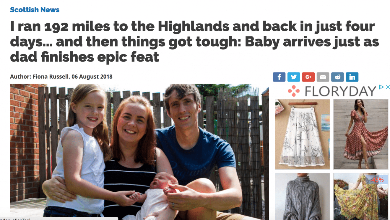 This story about Chris Sim, a teacher from Fife who ran 200 miles on the West Highland Way, out and back, with a summit of Ben Nevis in the middle, featured in the Sunday Post. See the story as it was published.