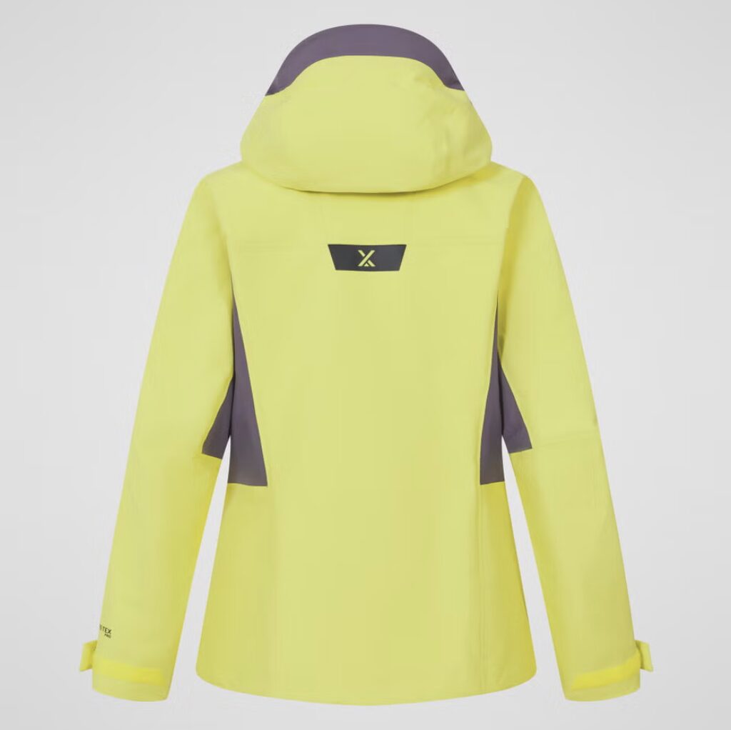 The three different colour choices are good. The yellow is bright and has purple inserts under the arms. The purple is quite a pretty lilac colour, with black area under the arms and yellow zip pulls. I am not a fan of black outdoor clothing but for people who prefer darker hues, it’s there to be bought.