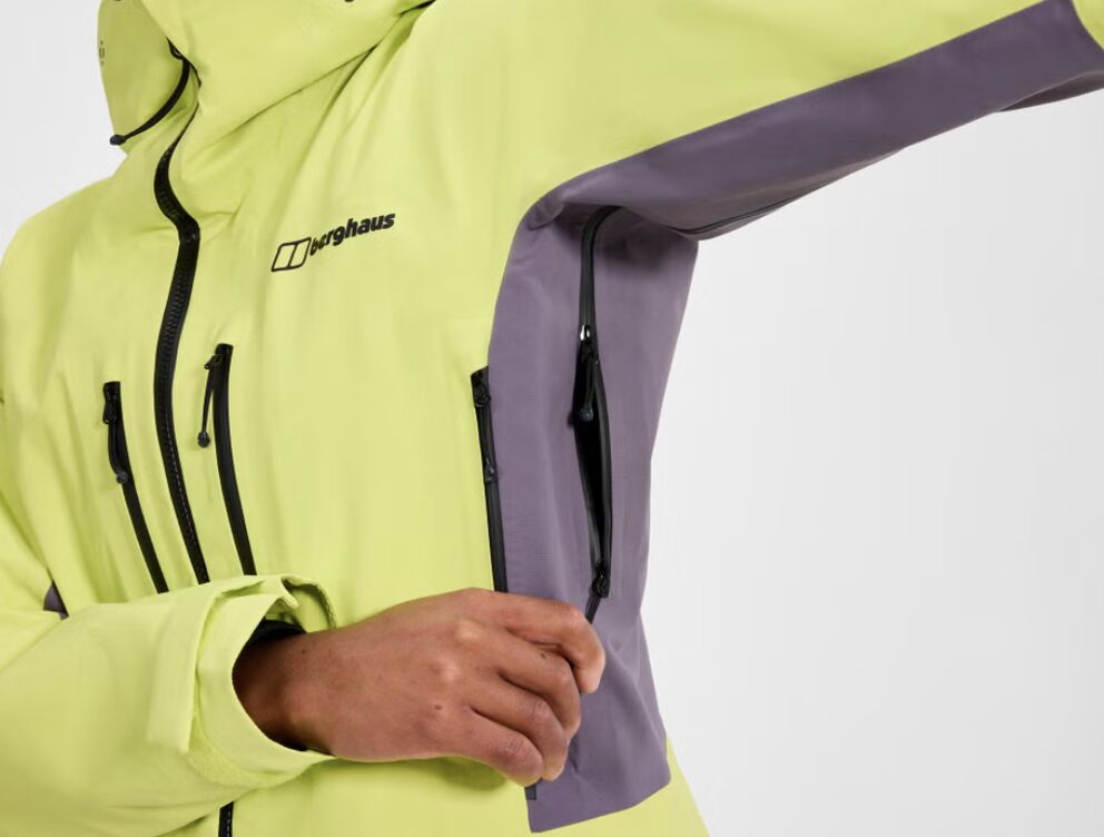 The fit is a little different from other Berghaus jackets that I’ve tested. Usually the UK10 is roomy on me. This jacket feels a little neater over the shoulders and it’s a bit shorter than I might expect for a winter waterproof jacket. I still have good freedom of movement around the shoulder sand I can fit severally baselayers and a lightweight insulated jacket underneath but I think it is a bit of a tighter fit than normal. I suggest going up a size if you want even more room for layers underneath.