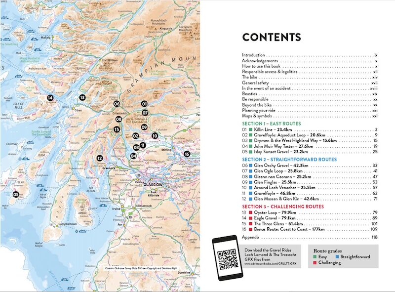 The book includes the acclaimed Gravelfoyle trails around Aberfoyle; sections of the West Highland Way and John Muir Way; two of Scotland’s Great Trails; coastal adventures on the Isle of Mull; a coast-to-coast challenge, cycling west from the Firth of Forth across the Central Belt; an a sunset gravel ride on the Island of Islay.