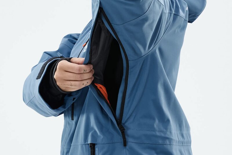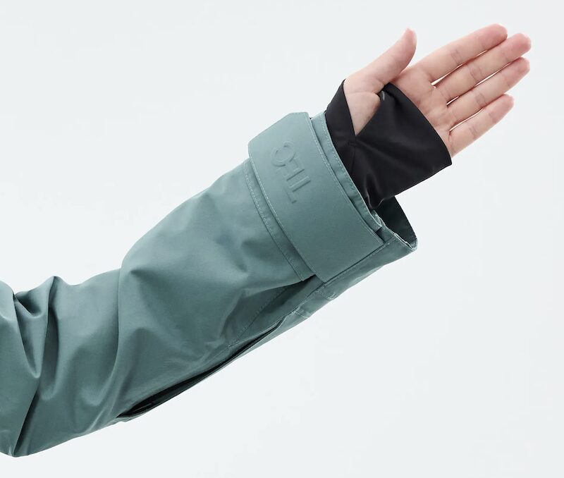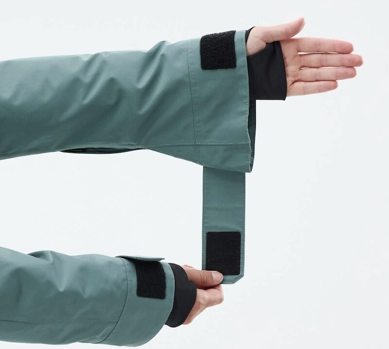 The wrist cuffs are wide and adjustable. This is great if you want to pull on the jacket over big gloves. There are tons of pockets in the jacket and the bibs. I didn’t use them all but the most useful was a roomy front pocket to fit my large smartphone, a lift pass pocket on a sleeve, a mesh inner pocket for spare gloves and further pockets on the bib pants that I used for snacks and other bits of kit.
